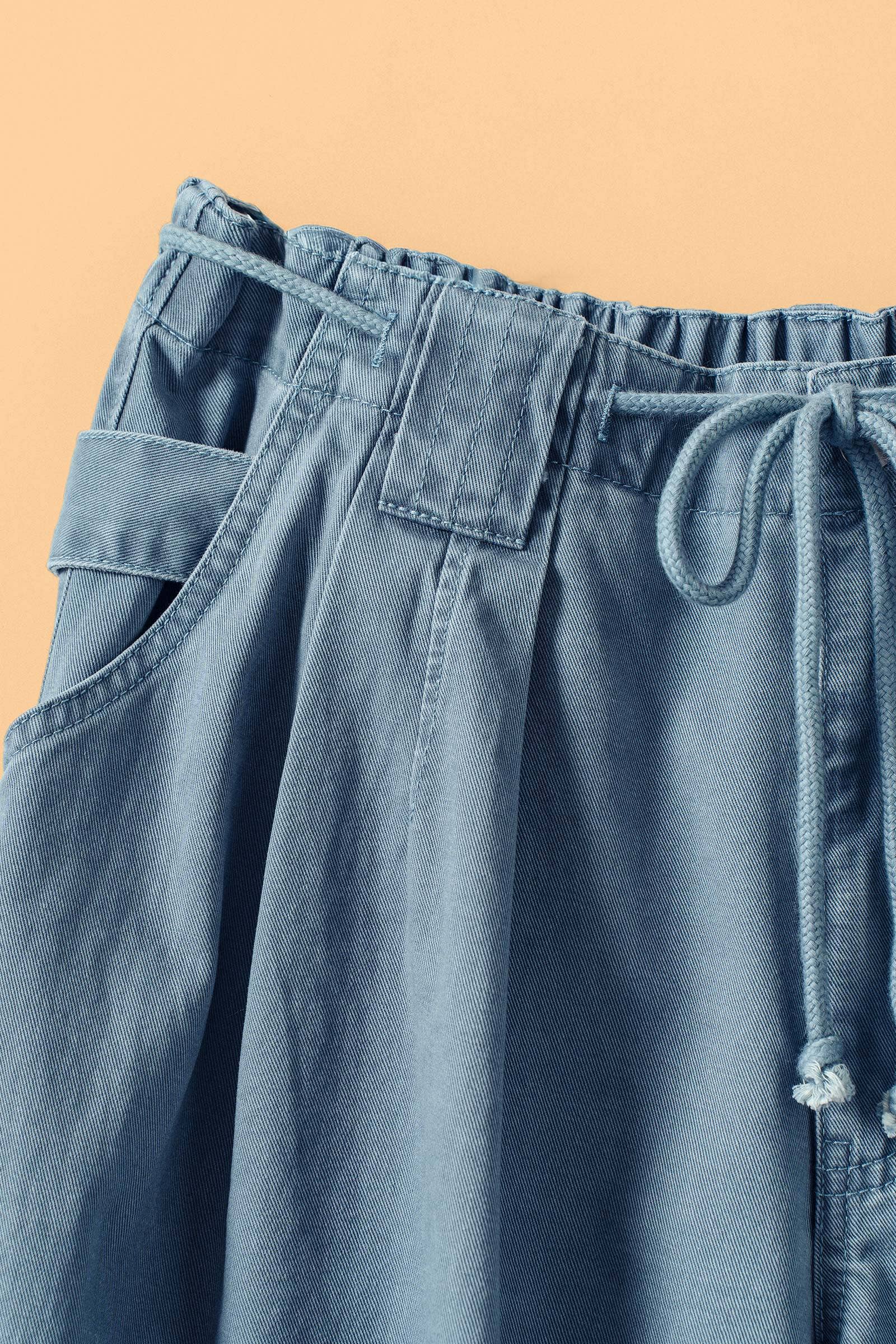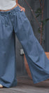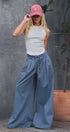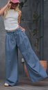 Effortlessly stylish wide-leg denim pants crafted from soft, lightweight cotton. Designed with a high-rise adjustable drawstring waist and deep side pockets for comfort and ease.